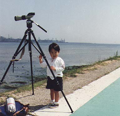 フィールドスコープがあれば、土手の上から十分楽しめます。