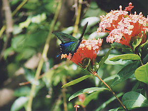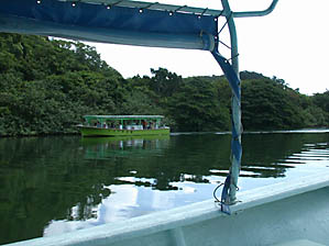 涼しくて気持ちの良い朝を迎えた。7月24日、宿を出て間もなく電線にカンムリワシついに発見!やった!これでやっと遅れを取り戻せた。めでたしめでたし。虹彩と目先の黄色が大変印象的である。悠然とたたずむ彼は何を思い何を見ているのか。そこだけ時間がとまっているかのように感じられた。 まず午前中はマングローブ生い茂る浦内川を遊覧船で上る。乗船してみてびっくり。すごいスピードなのだ。しかし受ける風は心地よい。南国ならではの珍しい植物を船長さんの説明により見学。オヒルギ、メヒルギ、ヤエヤマヒルギをはじめ、ユウナ、オキナワキョウチクトウ、アダン、ヤエヤマヤシ、サキシマスオウノキ、興味深いものばかり。時折リュウキュウアカショウビンが行き過ぎる。気がつけば水面に何かぽつぽつと浮いているものがある。サガリバナ?えっ!うそーっ!そう、それは前夜咲いたサガリバナだったのである。 出発前「離島情報」という本で知り、とても見たかった花である。西表島の初夏を彩るサガリバナは河川付近の湿地に自生し、花がフジのように垂れ下がって咲くことからこの名がある。花茎は長いもので1mもあるそうだ。開花期は6〜7月頃で、1番の見頃は毎年違うそうなので、この花を見られた人はとても幸せな人だと言われる。夜に開花し夜明けとともに音を立てて落ち、落下した花は川面をうめつくすという。川に花が咲くと形容されるその光景はいったいどんなものだろうと想像をめぐらせていた。しかし、開花期が一定しないことと、夜中〜明け方のカヌーツアー等に参加しないと見るのは困難と思われ今回は時間的に無理とあきらめていたのだ。 その憧れの花が今目の前に浮いている。船長さんもスピードを落としてくれて、船はゆっくりと深緑の川面を分け入る。花びらに思えるのは長い雄しべであり、艶やかで透きとおるほどの淡いピンク色が放射状になり水面上にふわふわと咲いているように見える。きらきらと光る美しさは、まるでピンクの宝石だ。無数のピンクの宝石が前から後ろへ流れゆく。この幻想の世界の中をゆっくりと進む自分がここにいることが信じられなかった。 往復1時間の船旅を終え、川岸にある噂のみやげ店に立ち寄る。ここはオリジナルのおみやげが自慢なのである。「大阪から来たんです。西表に行ったら必ず立ち寄るように先輩に言われて。こちらのおみやげ見るの楽しみにしていたんです。」と言うと、女性の店主が「まあ!うれしい!じゃあ、お礼にこの中から2枚ずつ選んで!」とオリジナルポストカードをくださった。友人は水牛の絵柄のを私はイリオモテヤマネコの絵柄のカードを選んだ。ここのオリジナルTシャツはシルクスクリーンを何度も重ねて作るという凝った図柄でお勧め。西表の自然が楽しく描かれている。 西表島は何とも魅力的な島だ。島の約90%を亜熱帯の原生林に覆われその大部分が人跡未踏と言われている。野性味に満ち溢れ大きな街はないのに、ところどころに点在するショップや宿が実に充実している。大自然が生かされながら独特な文化を形成し同時に観光客が歓迎される理想的な空間が作られているように思った。 さて午後からは主人とは別行動。私と友人はいよいよ星砂の浜へGO!!